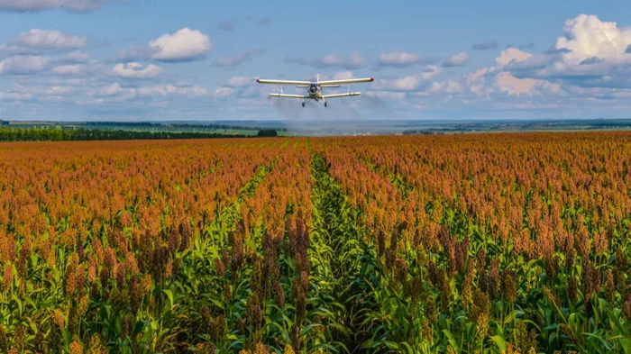 《插上科技的翅膀》 北大荒農(nóng)墾集團九三分公司鶴山農(nóng)場飛機植保作業(yè)。岳靜華 攝