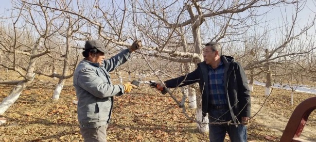 精準(zhǔn)實訓(xùn) 解鎖田間管護難題。黃羊河集團園藝場組織技術(shù)骨干深入田間地頭,開展了一場果樹冬季修剪技術(shù)現(xiàn)場培訓(xùn)。培訓(xùn)堅持“需求導(dǎo)向、實用為先”,技術(shù)骨干結(jié)合本地主栽品種特性,圍繞冬季修剪最佳時機、不同樹形修剪要點、疏枝短截手法等進行了現(xiàn)場演示和手把手指導(dǎo),有效解決了果農(nóng)“不敢剪、不會剪、剪不好”的難題,為來年果園豐產(chǎn)增收打牢了基礎(chǔ)。
