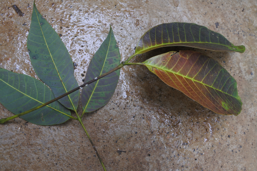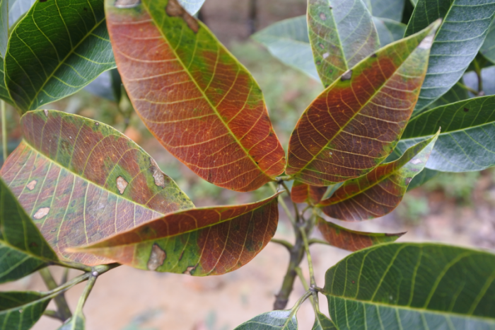 季風(fēng)性落葉病果、葉片及葉柄癥狀