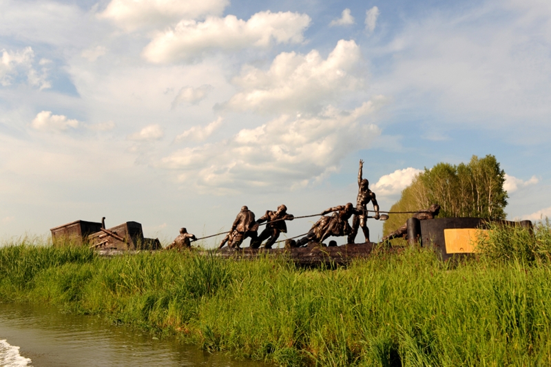 雁窩島上,殘?jiān)珨啾谡洳刂呿H、女真、隋唐的遺跡,而刻有“潛水掛鉤”“張德信運(yùn)齒輪”“羅海榮水上運(yùn)油”字樣的碩大雕塑,蘊(yùn)含著北大荒精神發(fā)源地曾經(jīng)上演的一幕幕震撼心靈的場景,展示著北大荒人誓把荒原變糧田的豪邁氣概。