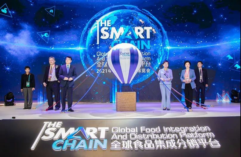 嘉賓們共同啟動熱氣球,光明食品集團(tuán)“THE SMART CHAIN全球食品集成分銷平臺”正式開幕。