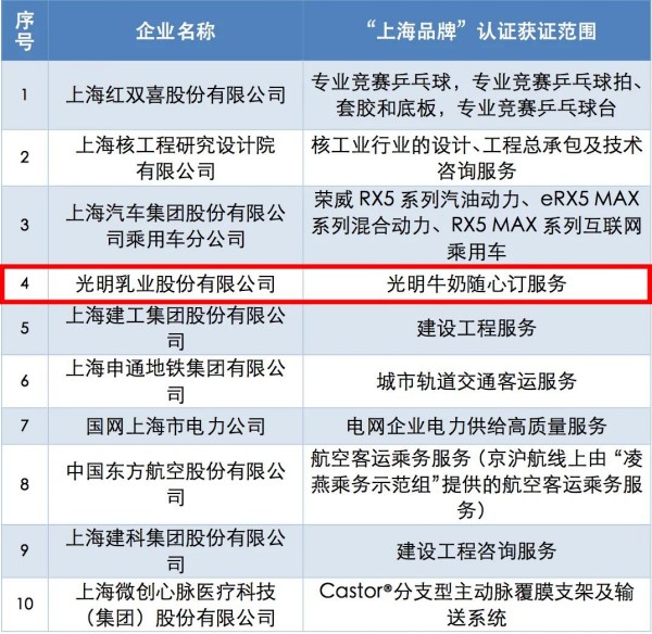 “上海品牌”以世界先進標(biāo)準(zhǔn)為引領(lǐng),以此推進“上海服務(wù)、上海制造、上海購物、上海文化”四大領(lǐng)域建設(shè),并以此構(gòu)建更高質(zhì)量、高要求的市場要求。2018年光明乳業(yè)首次通過認證,成為首家以食品通過認證的企業(yè),2022年光明牛奶隨心訂服務(wù)再創(chuàng)佳績,榮耀繼續(xù)。