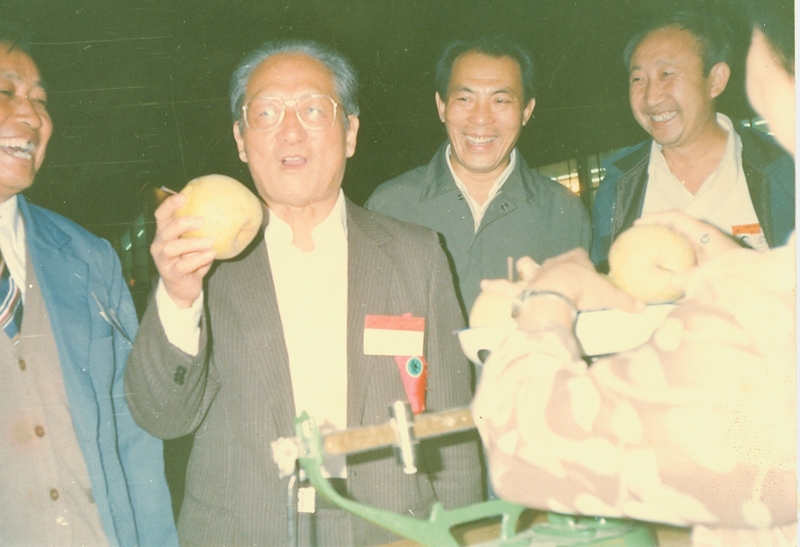 走進(jìn)安徽農(nóng)墾博物館第五展廳,一位老人手里拿著一個(gè)大黃梨滿(mǎn)面笑容地對(duì)著鏡頭的大幅圖片特別引人注目。文字說(shuō)明顯示,圖片拍攝時(shí)間是1990年9月27日,地點(diǎn)在北京農(nóng)業(yè)展覽館,老人是時(shí)任農(nóng)業(yè)部部長(zhǎng)何康,手里拿的正是安徽農(nóng)墾出品的“翡翠”牌碭山酥梨。