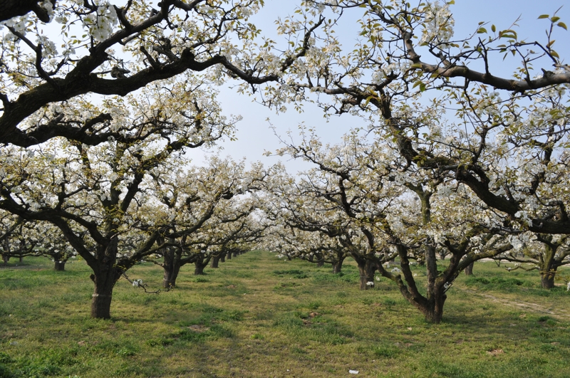 碭山,位于蘇、魯、豫、皖四省交界處,素有“世界梨都”之稱(chēng),每年陽(yáng)春三月,春和景明時(shí)節(jié),碭山大地萬(wàn)物復(fù)蘇,故黃漲綠,數(shù)十萬(wàn)畝梨花吐蕊綻蕾,競(jìng)相盛開(kāi)。放眼環(huán)顧,雪堆云涌,銀波瓊浪,沃野千頃,一片花海,景象蔚為壯觀。到八月中秋,遍地金珠墜地,碭山又是果的世界,田間地頭又成了果山果海,到處人歡車(chē)?guó)Q,芳香鋪地。置身其間,徜徉園圃,品嘗酥梨似蜜之甘甜,令人樂(lè)不思?xì)w,流連忘返。始建于1955年的安徽農(nóng)墾碭山果園場(chǎng)就坐落在這里。
