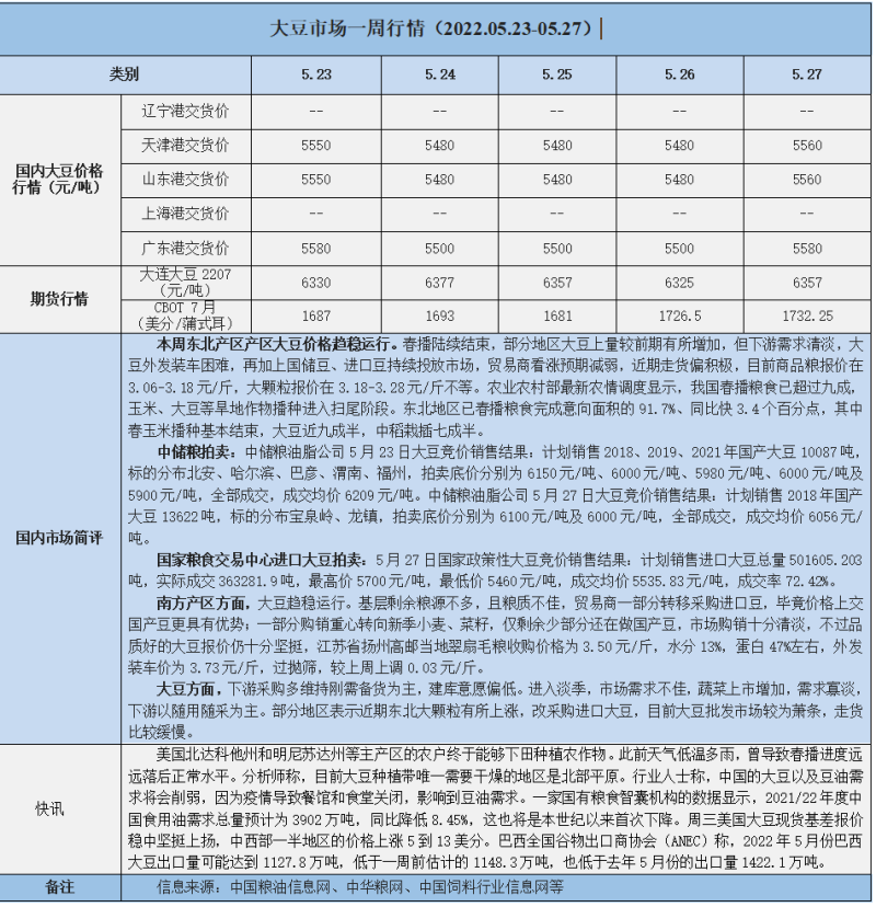天然橡膠、大豆、玉米市場一周行情(2022.05.23-05.27)
