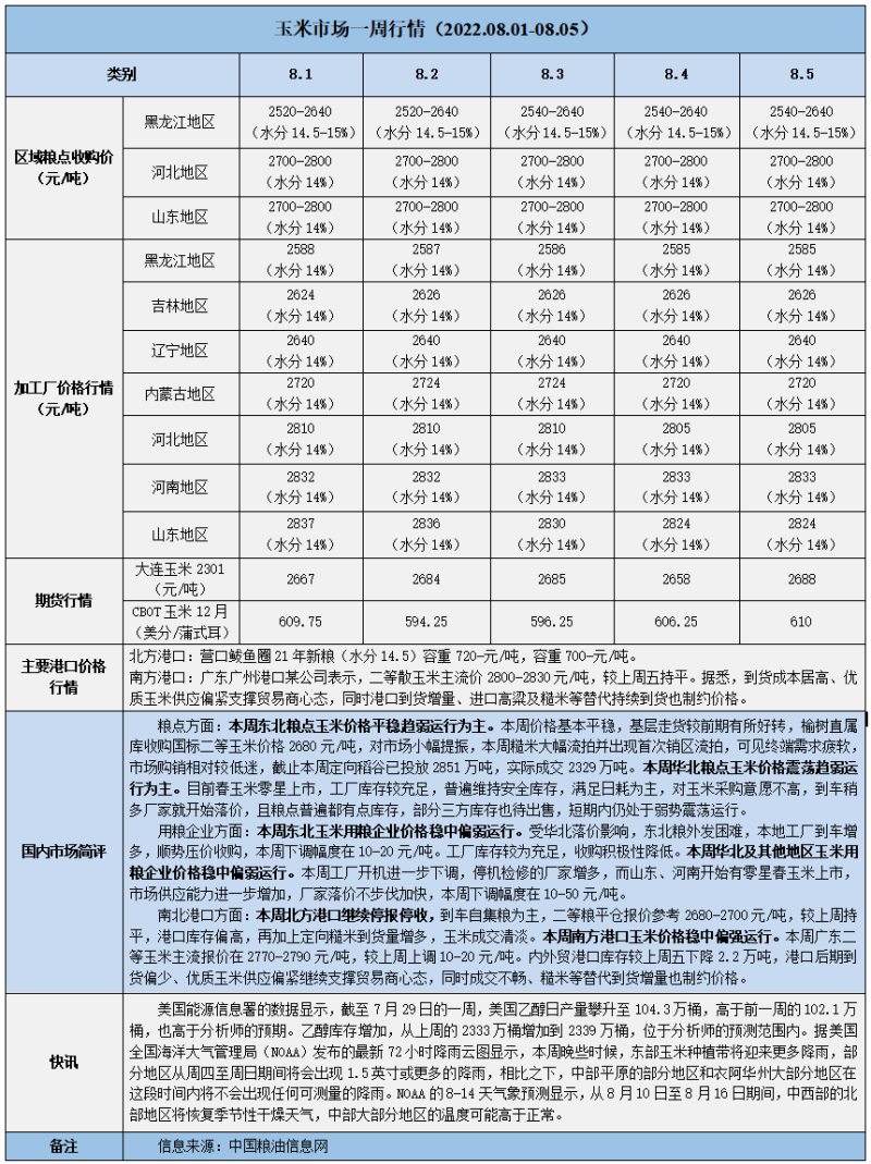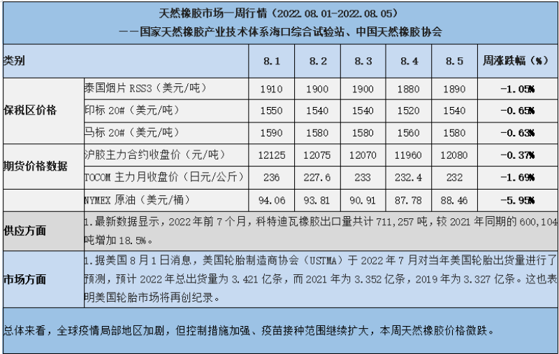 天然橡膠、大豆、玉米市場(chǎng)一周行情(2022.08.01-08.05)