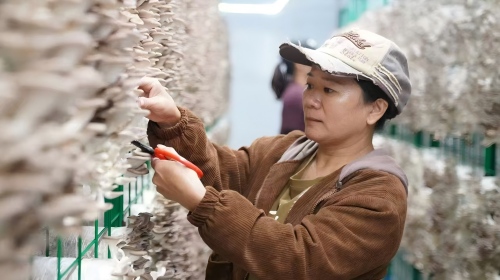 走進(jìn)這片廠區(qū),三幢出菇房映入眼簾。網(wǎng)架上,一個(gè)個(gè)秀珍菇菌袋平放在網(wǎng)格間,形態(tài)飽滿(mǎn)的秀珍菇從菌袋兩端探出來(lái)?;貑T工拿著剪刀,將大小、形態(tài)、品質(zhì)都符合標(biāo)準(zhǔn)的菌菇剪下,整齊碼放在筐里。在智能化系統(tǒng)的調(diào)控下,溫度、濕度、光照、空氣等環(huán)境因素都得到適當(dāng)調(diào)節(jié),出菇環(huán)節(jié)的自動(dòng)化程度達(dá)到60%以上,在養(yǎng)菌環(huán)節(jié),自動(dòng)化程度甚至達(dá)到90%以上,基本不需要人為干預(yù)。