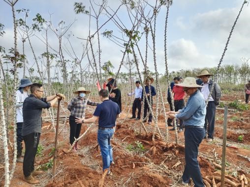 以廣西亞熱帶作物研究所李軍農研究員為組長,熱科院品資所劉國道研究員、李開綿研究員、陳松筆研究員和熱科院環(huán)植所陳青研究員為成員的專家組,在大豐農場美玉村木薯基地對申請品種進行了現(xiàn)場測產與品質鑒定,并認真聽取了選育團隊對木薯“華南22號”新品種選育情況的匯報,就有關問題進行了質詢,一致同意木薯“華南22號”通過現(xiàn)場鑒評。