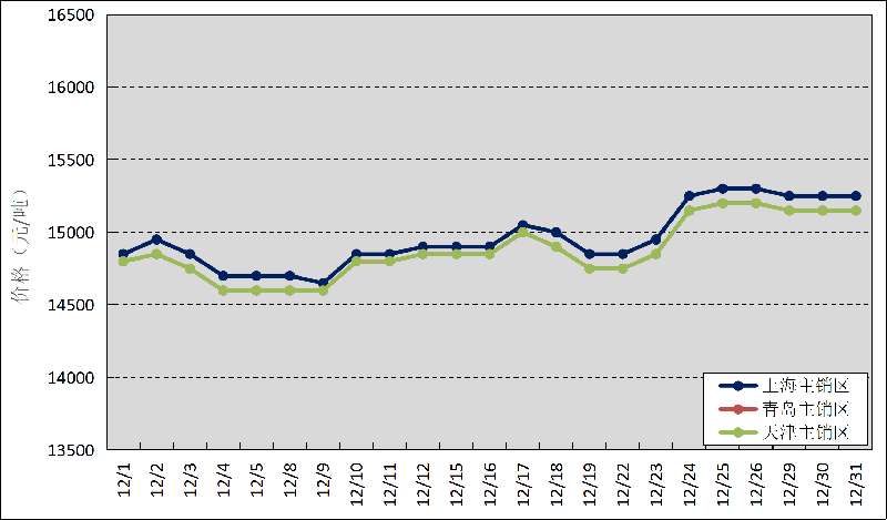 圖3  2025年12月國內(nèi)主銷區(qū)天然橡膠價(jià)格走勢(shì)