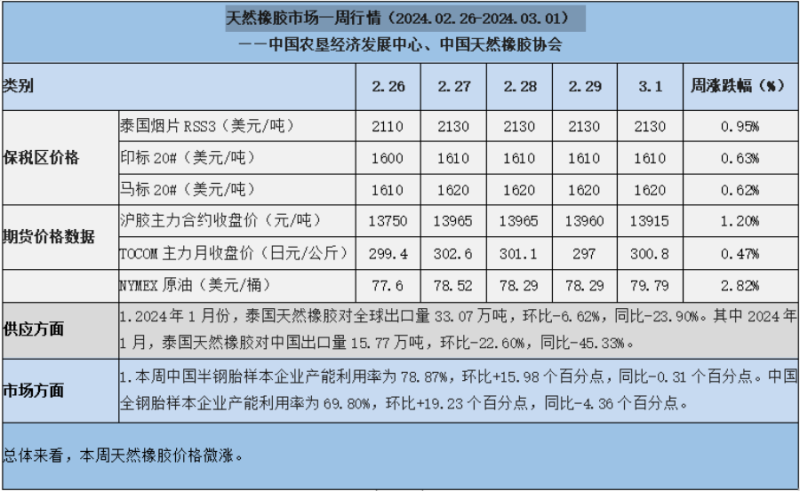 天然橡膠、大豆、玉米市場一周行情(2024.02.26-03.01)