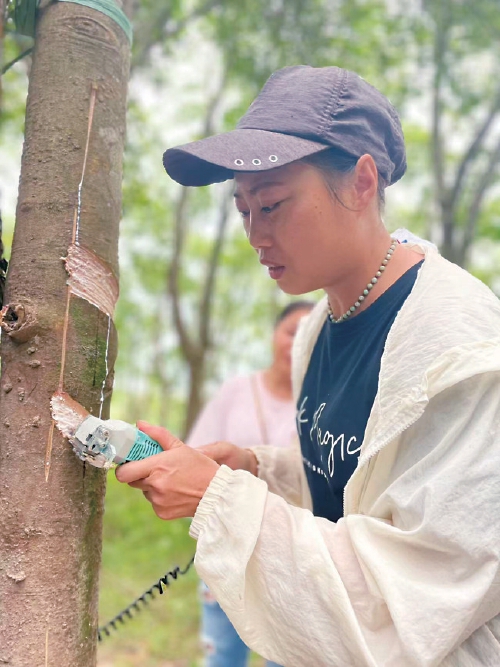 中國(guó)熱帶農(nóng)業(yè)科學(xué)院橡膠研究所研制的電動(dòng)割膠刀提升了割膠效率,減輕了割膠工的勞動(dòng)強(qiáng)度?!⌒ぬK偉 攝