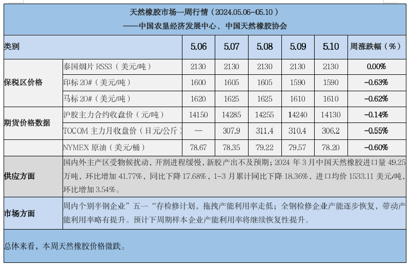 天然橡膠、大豆、玉米市場一周行情(2024.05.06-05.10)