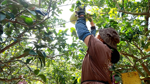 基地負(fù)責(zé)人陳業(yè)軍表示,自己是一名退伍老兵,2015年退休以后,發(fā)現(xiàn)種植沙田柚,能夠帶動(dòng)家鄉(xiāng)父老走上致富道路,然后就在家鄉(xiāng)租了80畝地,開(kāi)啟試種沙田柚,到今年是第十個(gè)年頭了。如今,這片高產(chǎn)優(yōu)質(zhì)的沙田柚種植基地不僅成為當(dāng)?shù)剞r(nóng)業(yè)發(fā)展的亮眼名片,更帶動(dòng)了周邊20多戶(hù)村民增收致富。不少村民被豐收景象吸引,主動(dòng)加入種植行列,在基地的指導(dǎo)下學(xué)習(xí)科學(xué)種植技術(shù),共享產(chǎn)業(yè)發(fā)展紅利。