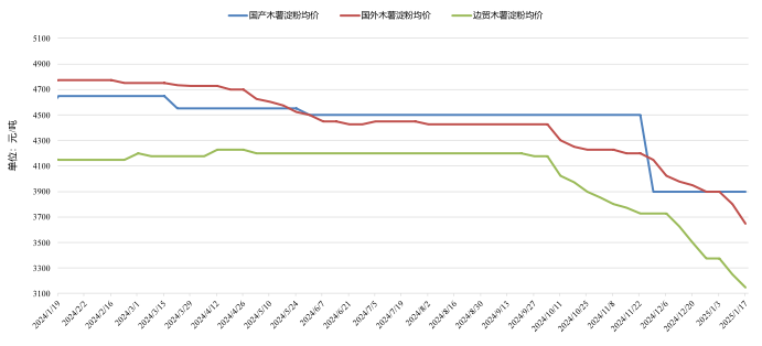 圖3  2024年1月份以來(lái)中國(guó)各類木薯淀粉均價(jià)變化情況