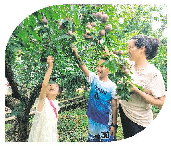 農(nóng)戶現(xiàn)場(chǎng)采收三華李。