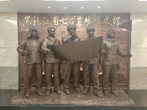 場(chǎng)史館的首廳,用雕塑展示七星發(fā)展歷史,這些雕塑代表的是七星農(nóng)場(chǎng)領(lǐng)導(dǎo)集體和廣大職工群眾集體的縮影。