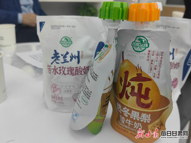 依據(jù)天水當?shù)厝罕娪每嗖?、芹菜等發(fā)酵汁作漿水,研發(fā)出漿水酸奶;根據(jù)蘭州地域特色農產品蘭州百合、永登苦水玫瑰、皋蘭軟兒梨,研發(fā)出百合酸奶、苦水玫瑰酸奶、軟兒梨酸奶、灰豆子酸奶;挖掘甘肅文旅資源,將甘肅省博物館標志性文創(chuàng)IP“綠馬”丑萌可愛的形象,融入酸奶產品外包裝設計中……