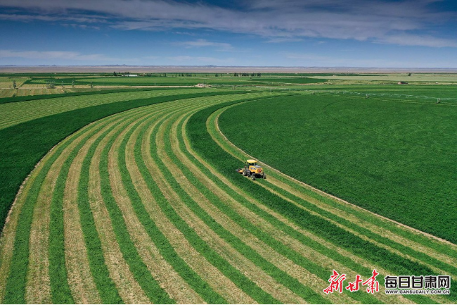 優(yōu)質牧草,是保障牛奶品質的第一關口。甘肅農墾在河西走廊建成高產優(yōu)質牧草示范基地30萬畝。