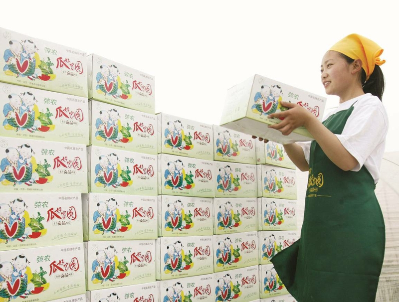 農(nóng)場(chǎng)黨委以問(wèn)題為導(dǎo)向,成立西瓜產(chǎn)業(yè)發(fā)展領(lǐng)導(dǎo)小組,確立西瓜產(chǎn)業(yè)總體發(fā)展思路,將大棚西瓜的年種植面積穩(wěn)定在1萬(wàn)畝左右,同一塊土地間隔4~5年種植一次大棚西瓜?!八递喿鞣N植”模式不僅西瓜品質(zhì)、產(chǎn)量上去了,而且病蟲(chóng)害少了,土壤結(jié)構(gòu)改善了。協(xié)會(huì)制定并下發(fā)了標(biāo)準(zhǔn)化技術(shù)規(guī)程、《無(wú)公害、綠色西瓜生產(chǎn)手冊(cè)》,出臺(tái)了“關(guān)于加強(qiáng)環(huán)境保護(hù)建設(shè)生態(tài)農(nóng)場(chǎng)工作的意見(jiàn)” 和“關(guān)于做好無(wú)公害、綠色農(nóng)產(chǎn)品質(zhì)量追溯工作的意見(jiàn)”。西瓜產(chǎn)業(yè)從低水平、無(wú)序化的一家一戶式生產(chǎn)向組織化、規(guī)模化、標(biāo)準(zhǔn)化、無(wú)公害、綠化、有機(jī)農(nóng)產(chǎn)品生產(chǎn)邁進(jìn)。2002年注冊(cè)了“弶農(nóng)”牌商標(biāo),2008年獲得“中國(guó)名牌農(nóng)產(chǎn)品”、“江蘇名牌產(chǎn)品”等榮譽(yù)稱號(hào),“弶農(nóng)”牌西瓜步入品牌化發(fā)展階段。2020年“弶農(nóng)”牌西瓜成功獲批江蘇省首批“江蘇精品”。
