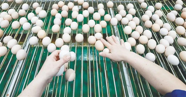 3月30日,在澄邁縣福山鎮(zhèn)的海南農(nóng)墾300萬只蛋雞全產(chǎn)業(yè)鏈(一期)項目的產(chǎn)蛋雞場,一按按鈕,雞舍蛋槽中一個個雞蛋就會通過傳輸帶收集送至車間。在車間里,隨著傳送帶自動運(yùn)轉(zhuǎn),一顆顆新鮮的雞蛋經(jīng)過初篩、清洗、烘干、檢測、消毒等環(huán)節(jié),被自動化分級。