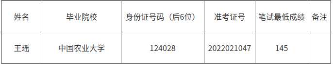 我單位2022年度公開(kāi)招聘應(yīng)屆畢業(yè)生面試人選確認(rèn)工作已經(jīng)結(jié)束,因技術(shù)推廣處農(nóng)業(yè)技術(shù)推廣工作職員(20222001)有考生因個(gè)人原因自愿放棄面試資格?,F(xiàn)按照筆試成績(jī)由高到低的順序進(jìn)行遞補(bǔ),遞補(bǔ)人選名單如下: