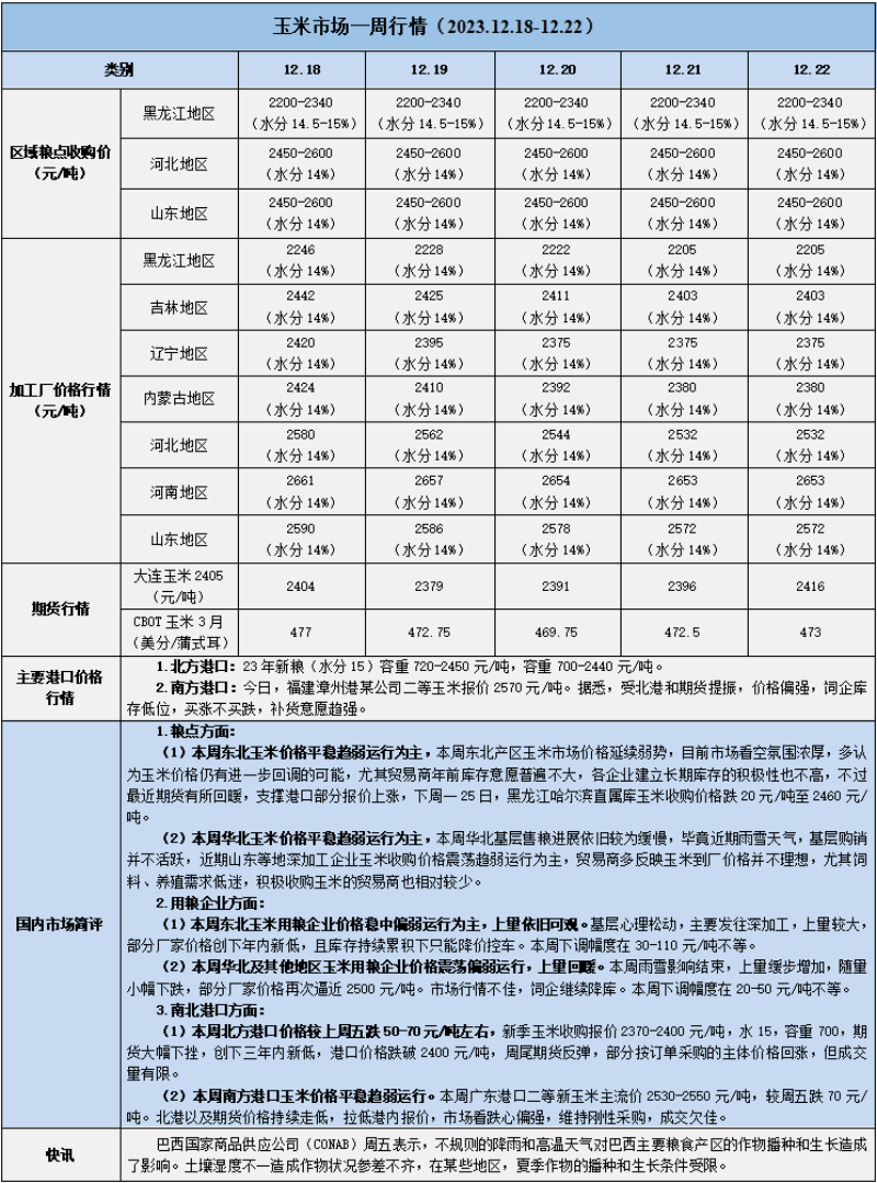 天然橡膠、大豆、玉米市場(chǎng)一周行情(2023.12.18-12.22)