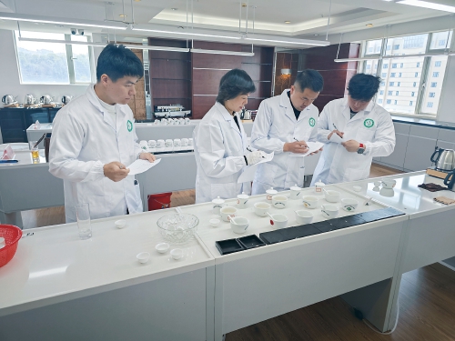 福鼎集團組織專家對入倉成品茶(白毫銀針)進行品質溯源、等級評審、價值評估?!∈茉L者供圖