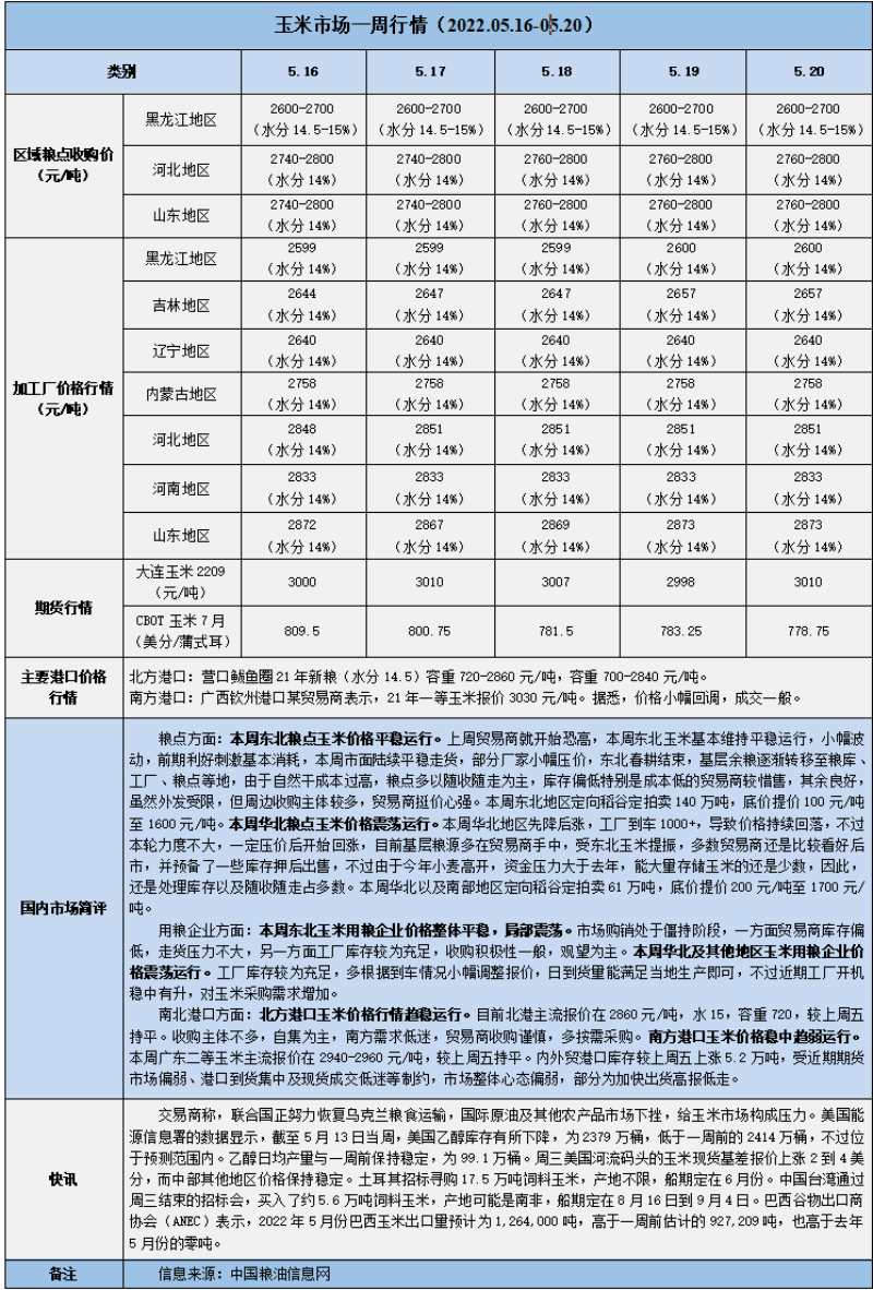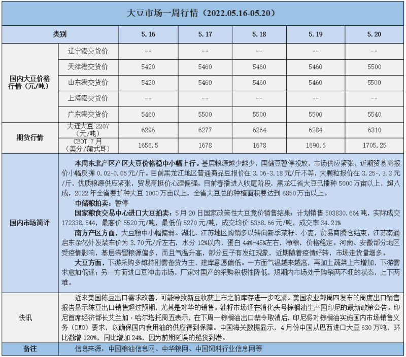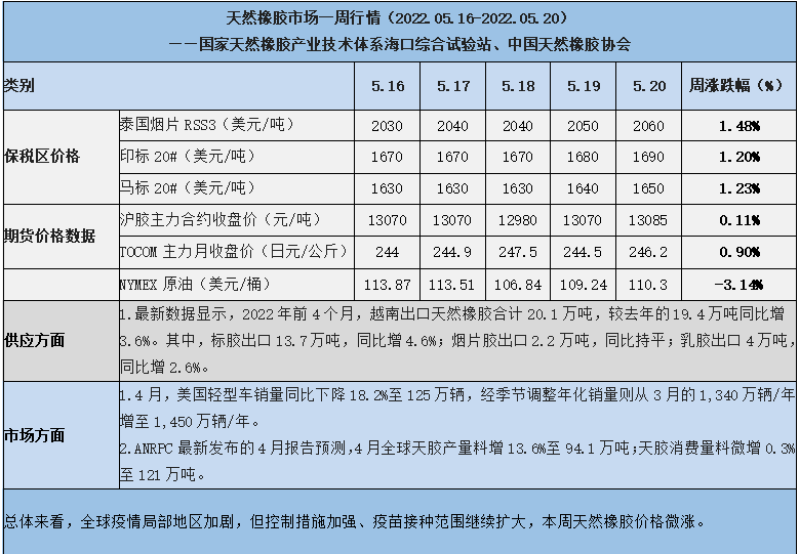 天然橡膠、大豆、玉米市場一周行情(2022.05.16-05.20)