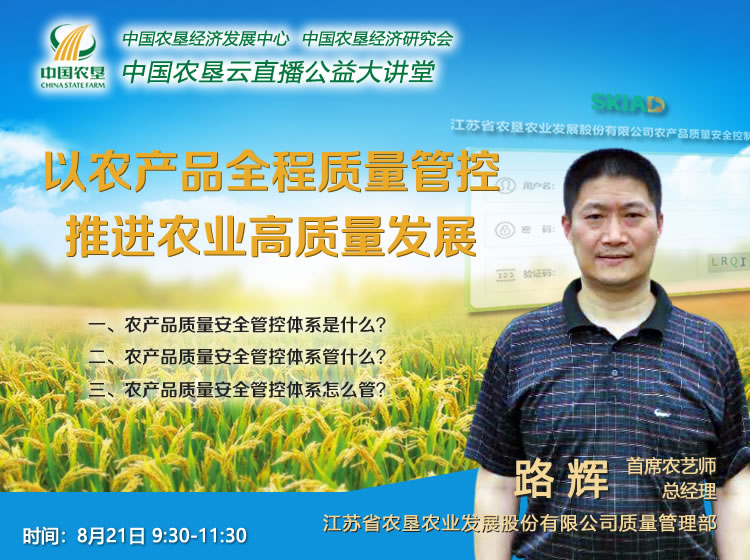 路輝,高級農(nóng)藝師,現(xiàn)為蘇墾農(nóng)發(fā)質(zhì)量管理部總經(jīng)理、江蘇省農(nóng)墾集團(tuán)首席農(nóng)藝師、中國農(nóng)墾第一屆標(biāo)準(zhǔn)化委員會(huì)委員,長期從事農(nóng)墾農(nóng)產(chǎn)品質(zhì)量安全管理與風(fēng)險(xiǎn)控制研究等工作,牽頭并參與起草《江蘇農(nóng)墾農(nóng)產(chǎn)品質(zhì)量安全標(biāo)準(zhǔn)化控制手冊匯編》、《農(nóng)墾優(yōu)質(zhì)水稻生產(chǎn)技術(shù)操作規(guī)程》、《農(nóng)墾系統(tǒng)優(yōu)質(zhì)稻谷儲(chǔ)運(yùn)技術(shù)規(guī)范》等多項(xiàng)標(biāo)準(zhǔn)化技術(shù)規(guī)程;主持蘇墾農(nóng)發(fā)農(nóng)產(chǎn)品質(zhì)控體系信息化平臺項(xiàng)目建設(shè);獲中國商業(yè)聯(lián)合會(huì)科學(xué)技術(shù)獎(jiǎng)一等獎(jiǎng)一項(xiàng);編寫專業(yè)技術(shù)標(biāo)準(zhǔn)2項(xiàng),獲得多項(xiàng)著作權(quán),發(fā)表論文專著30余篇。