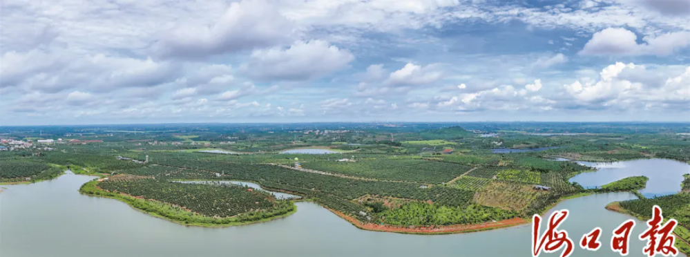 從空中俯瞰瓊山區(qū)三門坡鎮(zhèn)福湖火山荔枝種植示范基地,連片的果樹(shù)生機(jī)勃勃。??谑腥诿襟w中心記者 蘇弼坤 攝