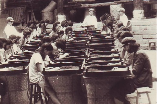 不僅如此,許多為茶場發(fā)展付出一生的工人“獻(xiàn)了青春獻(xiàn)子孫”,把自己的子女也培養(yǎng)成了茶場工人,一生從茶侍茶。大舅的兒子,我的大表哥譚貴生,高中畢業(yè)后就進(jìn)入湄潭茶場工作,當(dāng)過技術(shù)員、車間主任,制茶廠副廠長、代理廠長,也為湄潭茶場的發(fā)展做出過貢獻(xiàn)。他還是當(dāng)時(shí)湄潭茶場名優(yōu)綠茶“湄江茶”的炒制能手,“湄江茶”由中央茶場研制的“湄潭龍井”發(fā)展而來,制作工藝全靠手工,殺青、輝鍋,全程在燒紅的鐵鍋中進(jìn)行,猶如“火中取栗”。大表哥憑借吃苦耐勞的精神,三年就熟練掌握了湄江茶的炒制技術(shù),成為茶場技術(shù)骨干。2013年,湄潭茶場移交給湄潭縣政府管理,大表哥自愿申請(qǐng)下崗,成立湄潭貴云茶業(yè)公司,開始了他的自主創(chuàng)業(yè)之路。