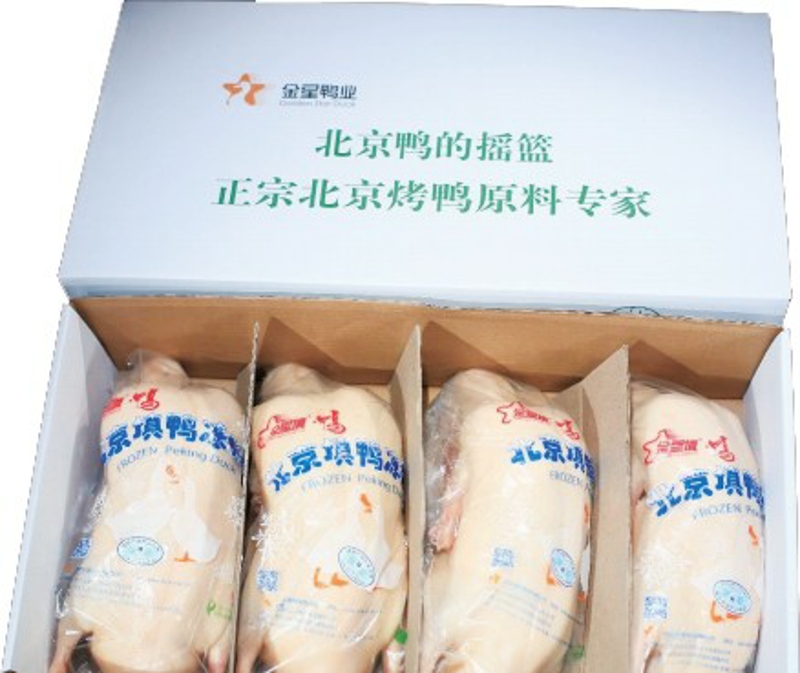 產(chǎn)品特色:金星鴨業(yè)旗下主打產(chǎn)品“金星填”北京烤鴨坯,皮脂豐厚,肉質(zhì)細嫩,是制作北京烤鴨唯一正宗的原料鴨。它具有別的肉鴨產(chǎn)品不具備的獨特性。首先,原料品種高貴純正。該產(chǎn)品原料來自于金星鴨業(yè)旗下北京南口北京鴨育種中心的“南口1號北京鴨配套系”。該育種中心是國家級北京鴨保種場,擔負著國家賦予的北京鴨保種和良種繁育推廣的雙重歷史使命和神圣職責。同時,經(jīng)過專業(yè)的填鴨技師,采用傳統(tǒng)手工填飼工藝生產(chǎn)而成,確保了烤制后的北京烤鴨肉質(zhì)風味保留北京鴨的“本味”。