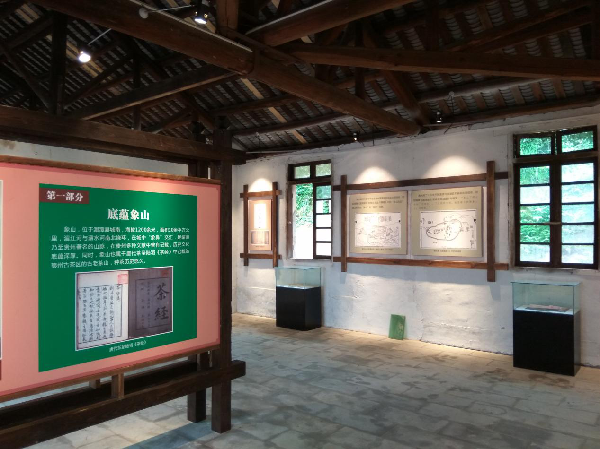 茶史陳列館。位于貴州省湄潭茶場(chǎng)打鼓坡分場(chǎng)場(chǎng)部舊址內(nèi),始建于2017年,原名“象山茶史陳列館”,是由貴州茶文化生態(tài)博物館負(fù)責(zé)籌建的一個(gè)以展示象山茶葉發(fā)展歷史的專題陳列館。館舍占地面積約1000平方米,展陳內(nèi)容包括圖文展廳、室內(nèi)實(shí)物場(chǎng)景復(fù)原和室外展板三部分:圖文展廳包括“前言”“底蘊(yùn)象山”“家國(guó)象山”“激情象山”“美麗象山”五部分11單元圖片、文字和文獻(xiàn)影印件;室內(nèi)實(shí)物場(chǎng)景復(fù)原包括分場(chǎng)收青室、辦公室、活動(dòng)室和職工宿舍等四部分。室外展板包括“中華茶文化名山”“貴州茶葉第一縣”兩部分。展陳實(shí)物40余件,復(fù)制品20余件,圖片240余張。