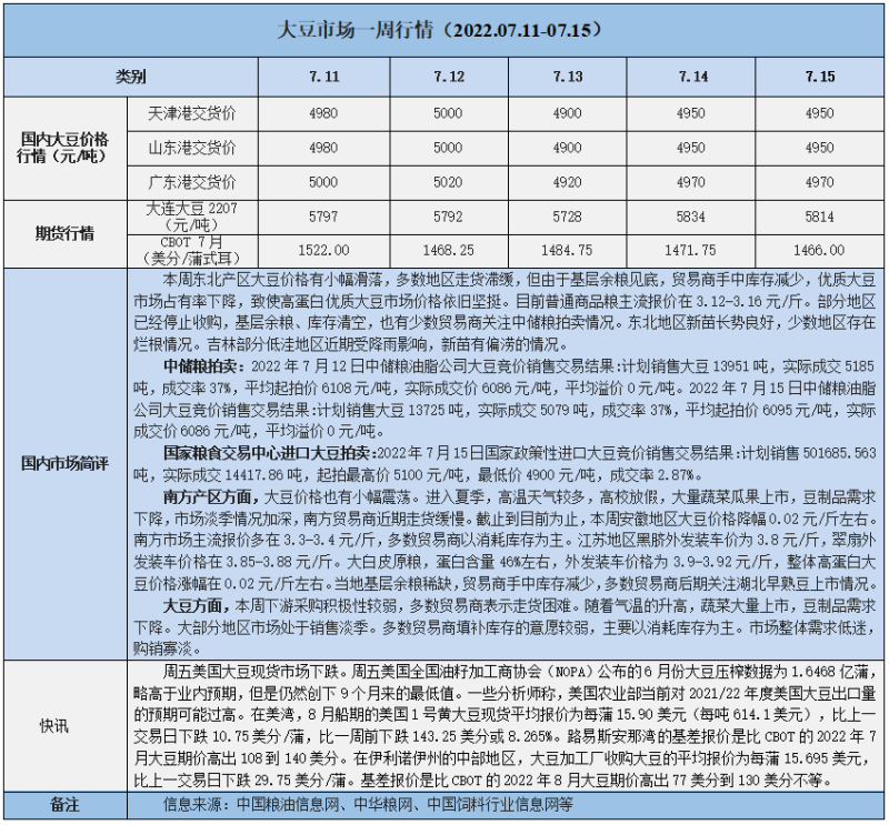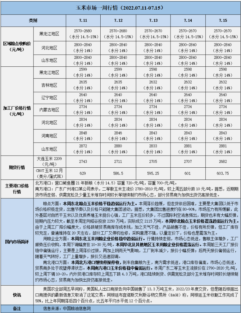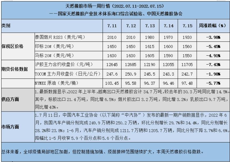 天然橡膠、大豆、玉米市場(chǎng)一周行情(2022.07.11-07.15)