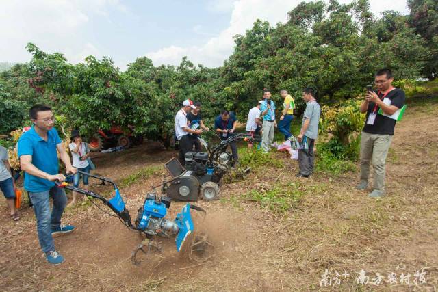 “看到了現(xiàn)代果園的希望?!弊岦S斌民感嘆的是位于從化區(qū)鰲頭黃羅村的綠色家園荔枝生產(chǎn)示范基地。在這里,掘孔機(jī)、中耕管理機(jī)、肥料撒播機(jī)、多功能割草機(jī)、樹(shù)枝粉碎機(jī)、高枝修剪機(jī)、伸縮式修剪鋸、搬運(yùn)車(chē)、高空作業(yè)機(jī)、各類(lèi)噴霧直播機(jī)械等60余臺(tái)農(nóng)業(yè)機(jī)械設(shè)備進(jìn)行了展示和演示,分別用于解決山地果園運(yùn)輸、果園采摘、果園殘枝利用、果園管理等機(jī)械化應(yīng)用問(wèn)題。“震撼!”韓沛新參觀(guān)后感嘆道,他認(rèn)為果園機(jī)械化采摘演示尤其壯觀(guān)。農(nóng)業(yè)機(jī)械化的實(shí)現(xiàn)能解放勞動(dòng)力,對(duì)荔枝產(chǎn)業(yè)乃至水果產(chǎn)業(yè)都意義重大。