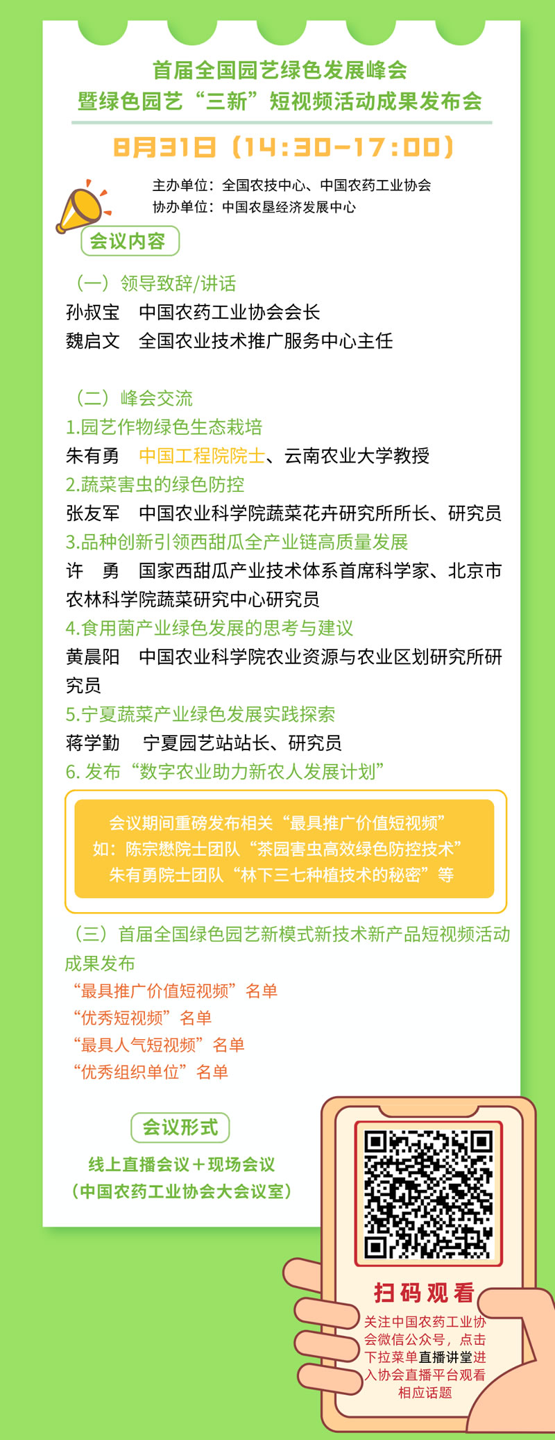 為深入貫徹落實(shí)綠色發(fā)展理念,用新方式推廣園藝綠色生產(chǎn)新模式、新技術(shù)、新產(chǎn)品,助推提高園藝產(chǎn)業(yè)質(zhì)量效益與競爭力和保障重要農(nóng)產(chǎn)品有效供給,全國農(nóng)技中心會同中國農(nóng)藥工業(yè)協(xié)會聯(lián)合舉辦首屆全國綠色園藝新模式新技術(shù)新產(chǎn)品(以下簡稱“三新”)短視頻學(xué)習(xí)交流活動。各地農(nóng)技部門、科研教學(xué)單位園藝生產(chǎn)主體和農(nóng)資服務(wù)主體等積極參加,共制作了300多個(gè)“三新”短視頻用于學(xué)習(xí)交流,活動組委會從中推評出了一批最具推廣價(jià)值短視頻和優(yōu)秀短視頻。為進(jìn)一步擴(kuò)大活動宣傳覆蓋面,中國農(nóng)藥工業(yè)協(xié)會將于2021年8月31日以線上直播形式舉辦首屆全國園藝綠色發(fā)展峰會暨“三新”短視頻學(xué)習(xí)交流活動成果發(fā)布會。