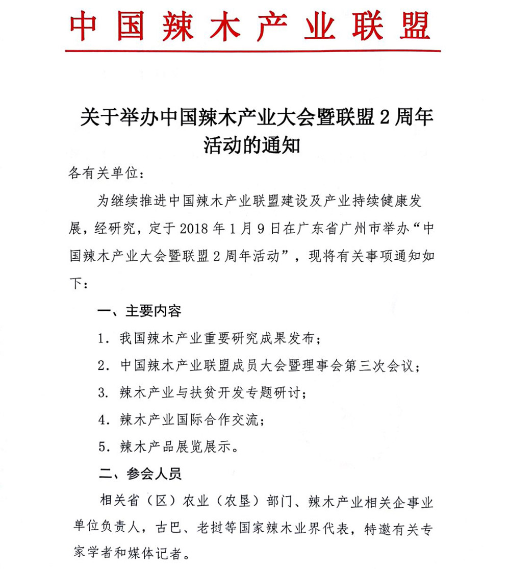 【辣木聯(lián)盟與大會】關(guān)于舉辦中國辣木產(chǎn)業(yè)大會暨聯(lián)盟2周年活動的通知