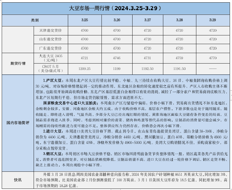 天然橡膠、大豆、玉米市場一周行情(2024.03.25-03.29)